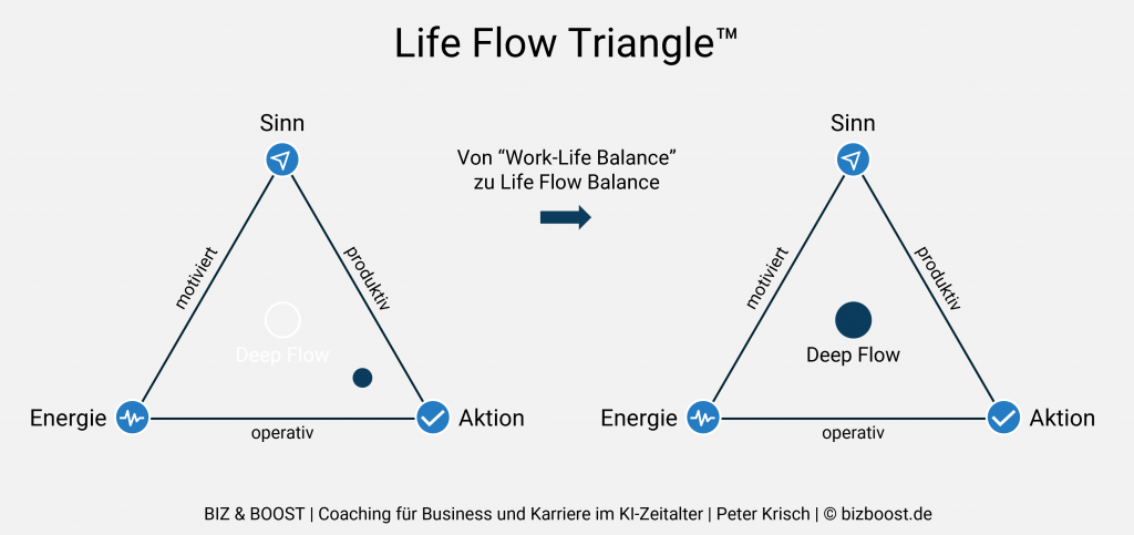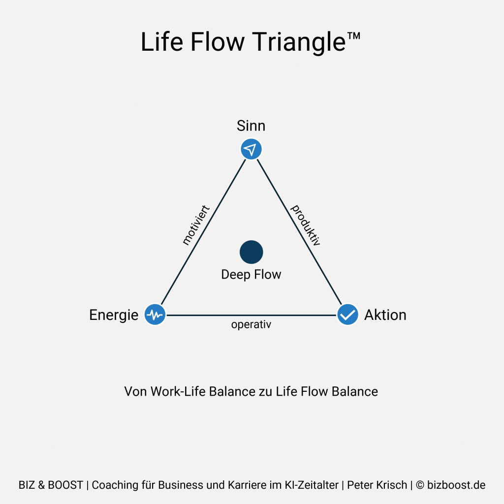 Das Life Flow Triangle™ hilft Dir, auf einen Blick zu erkennen, wo Du gerade stehst.